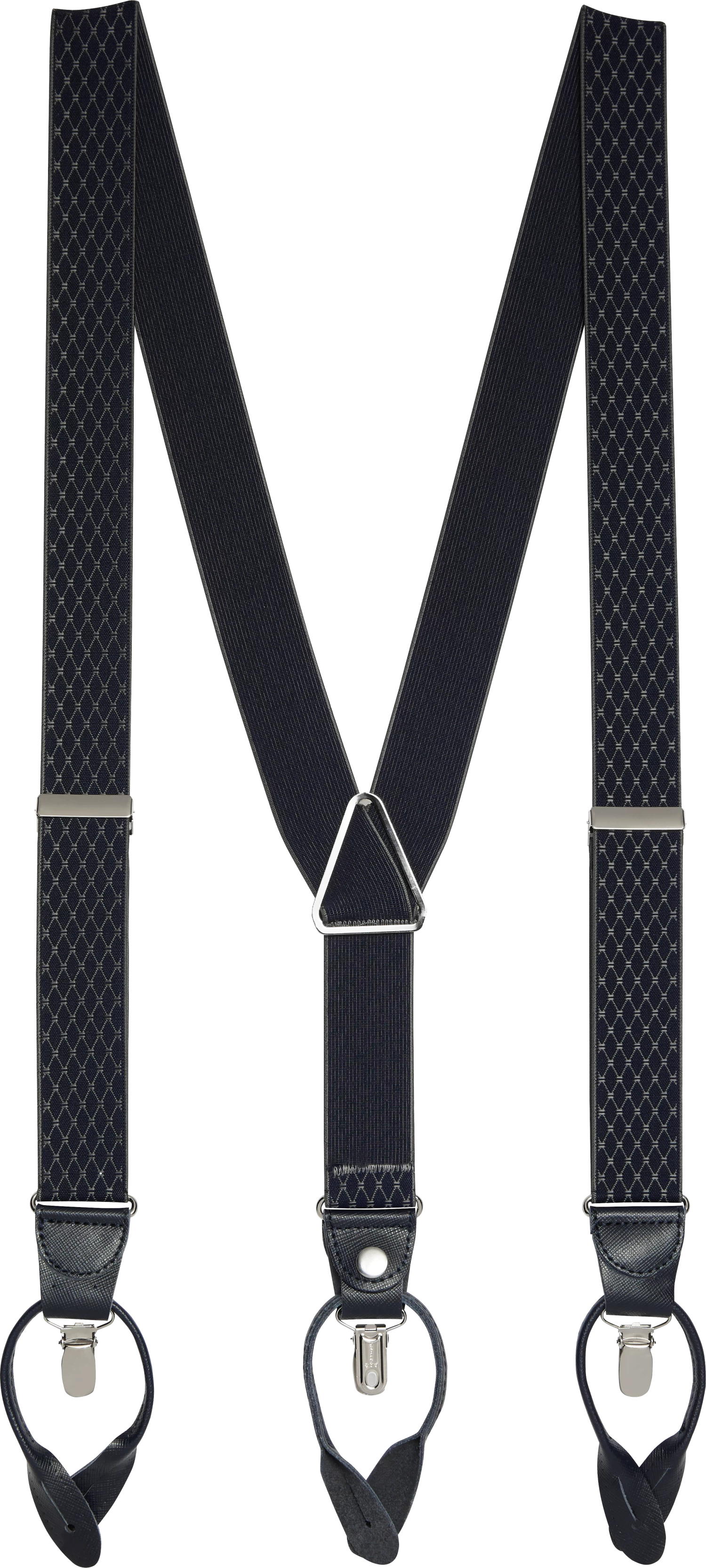 Get a smooth, neat, classic look with Pronto Uomo suspenders. These stylish suspenders feature convertible attachments with both clip and leather tab options.