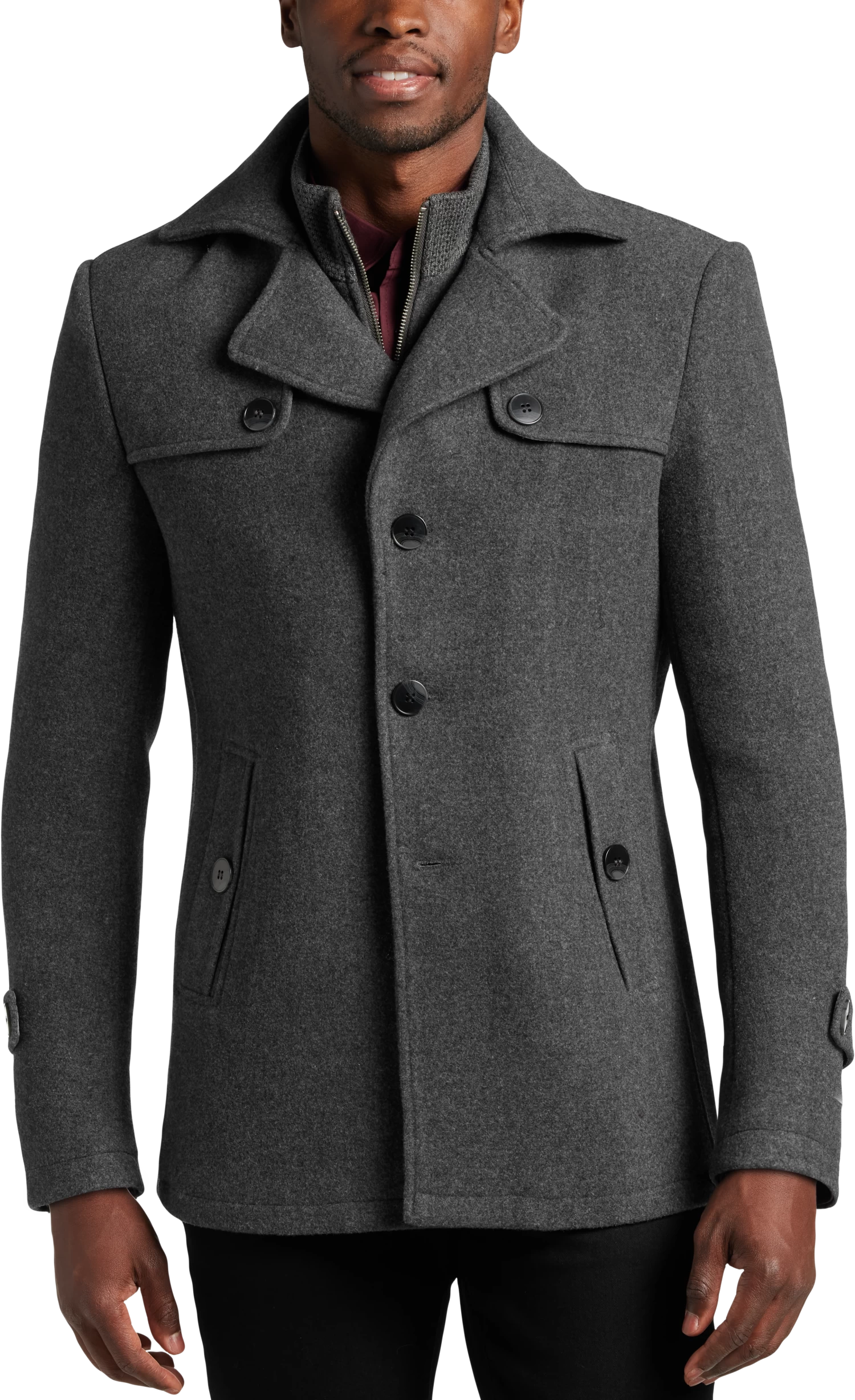 For colder days and evenings, this wool-blend coat comes with a bib vest for added warmth.