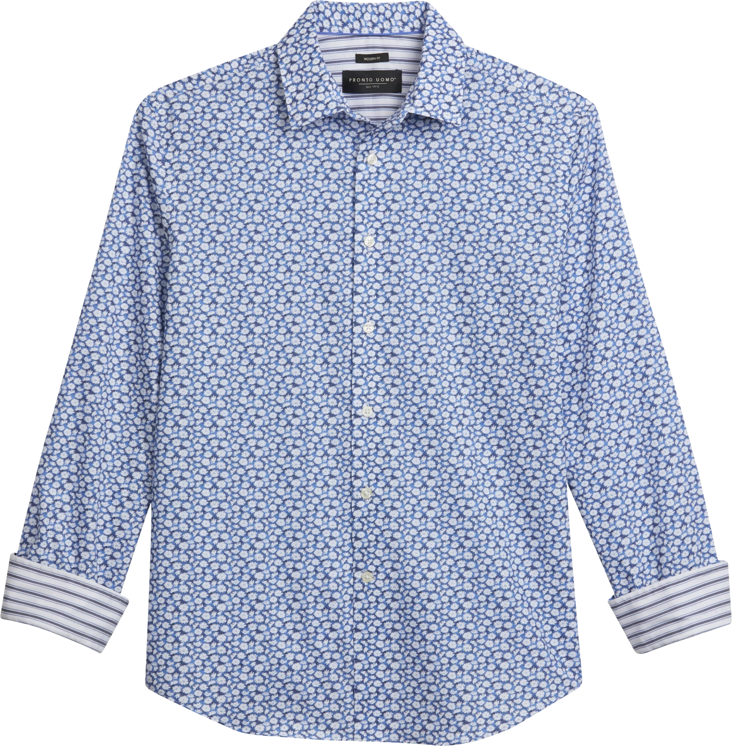 Incorporate a playful twist into your menswear repertoire with this sport shirt from Pronto Uomo featuring contrasting cuffs. This eye-catching detail elevates your style, infusing your ensemble with a touch of personality and flair.