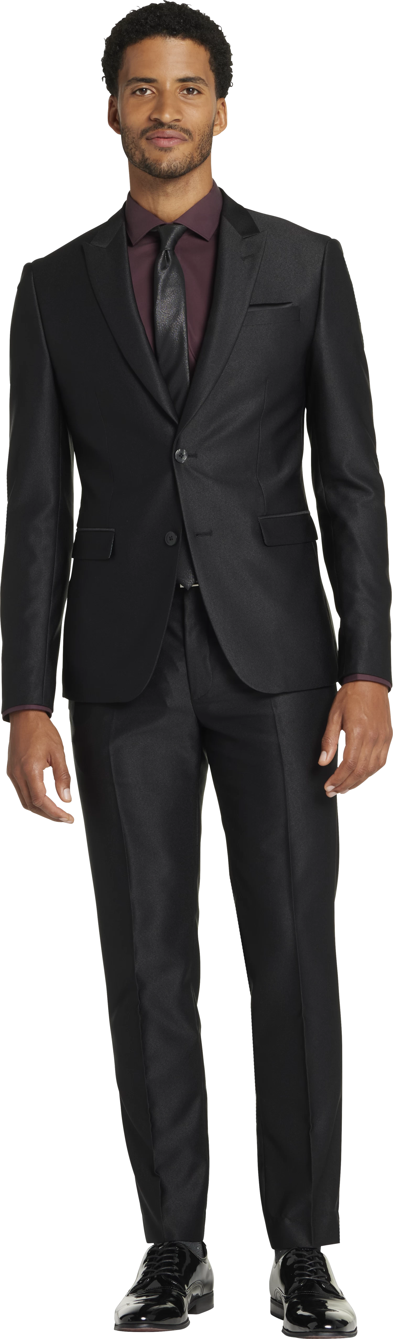 Get that well-tailored look with this Skinny Fit shiny suit separates jacket from Egara. Suit separates, like this peak-lapel, two-button jacket, allow you to select pant, jacket, and vest sizes independently for a customized fit.