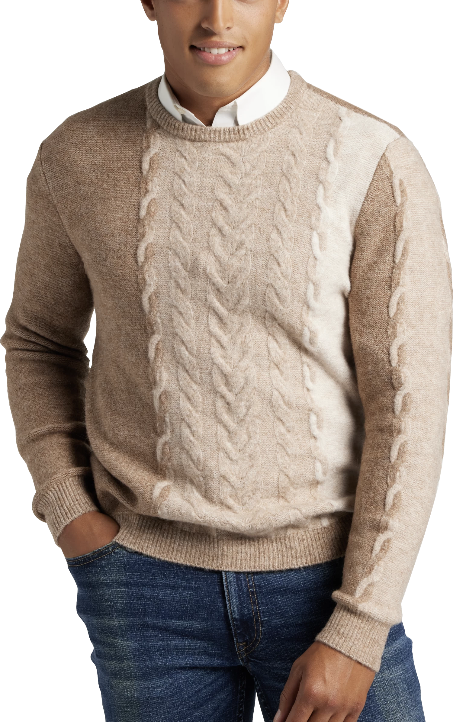 Look your best in this cable-knit sweater from Paisley & Gray. Made to get along with everything in your wardrobe, it features a tri-color pattern.