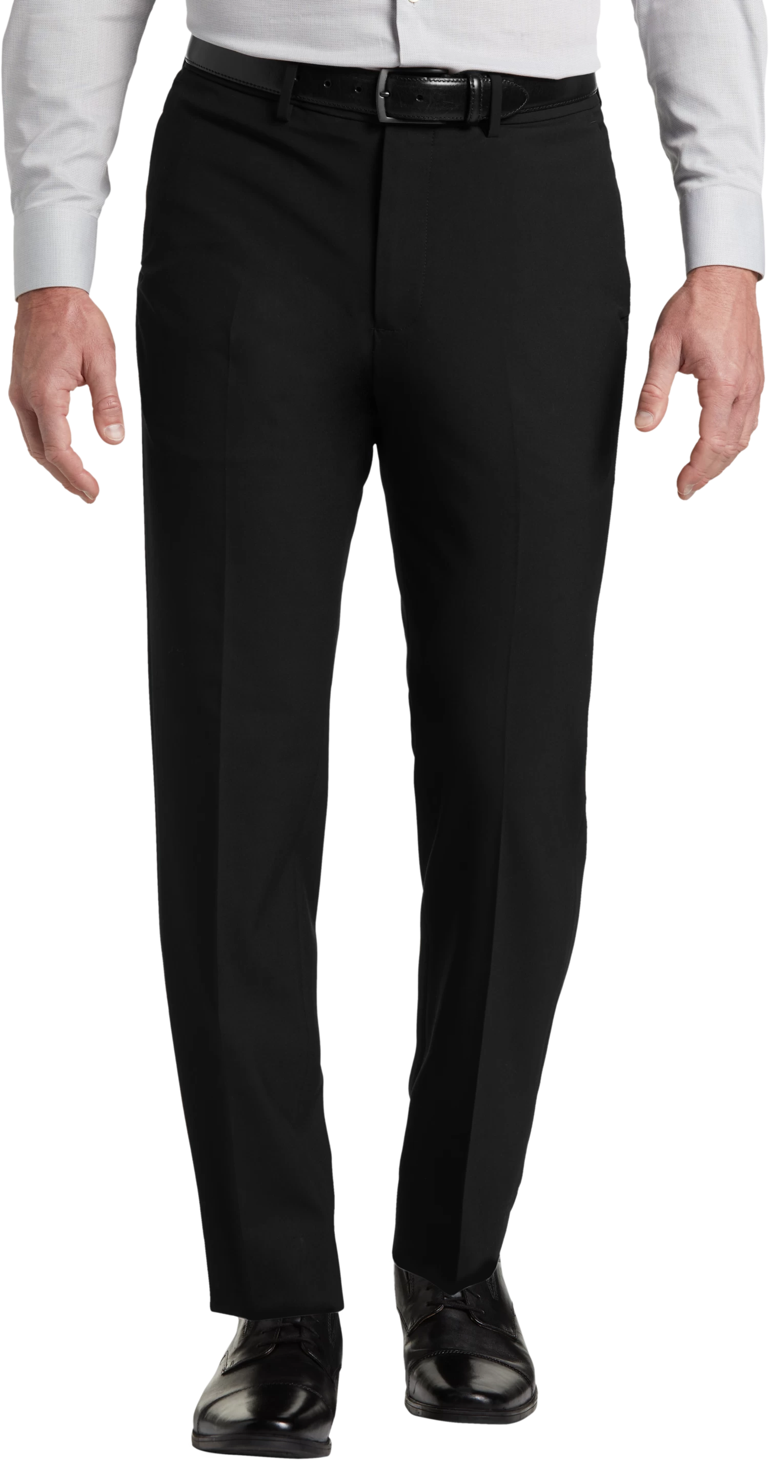 Slim fitting and stylish, these polyester-blend slacks feature a touch of stretch for the best in fit and comfort. They are wrinkle resistant and machine washable to fit your busy life.